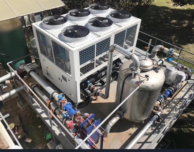 當(dāng)空氣冷卻式制冷機(jī)啟動時,制冷劑吸收蒸發(fā)器中被冷卻物體的熱量并蒸發(fā)。壓縮機(jī)不斷地從蒸發(fā)器中提取產(chǎn)生的氣體,并將其壓縮成高溫高壓蒸汽。然后,制冷劑蒸汽被送往冷凝器,在那里與空氣進(jìn)行熱交換。釋放熱量后,它凝結(jié)成液體。液體制冷劑在被膨脹閥減壓后,進(jìn)入蒸發(fā)器,在那里再次蒸發(fā),吸收冷卻物體的熱量。重復(fù)該熱交換過程,直到工業(yè)用水冷卻到所需溫度。