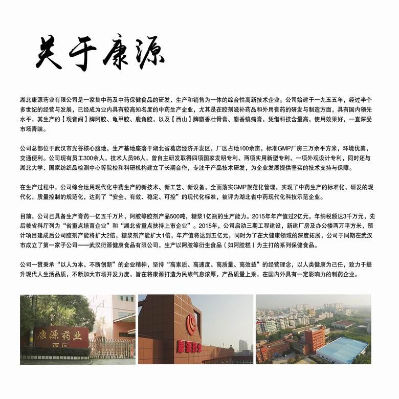 公司坐落在中國藥谷——湖北省葛店經濟技術開發區,占地面積七十余畝,擁有先進的生產設備一百多臺套,建有標準的 GMP 廠房一萬余平方米。現有員工 150 名 , 其中專業技術人員 40 名,中級以上專業技術人員 20 多名。公司建立了非常完善的生產管理制度和嚴密的質量保證體系,質保部化驗室配有先進完備的檢驗設備,員工上崗前都要經過嚴格的培訓,藥品生產嚴格按照 GMP 的要求進行,員工的一切行為都依規章制度而行,廠區環境優美,生產、生活秩序井然。康源是一個名副其實的現代化花園工廠。