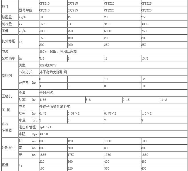 水冷調(diào)溫、降溫型常規(guī)除濕機技術(shù)指標<2>